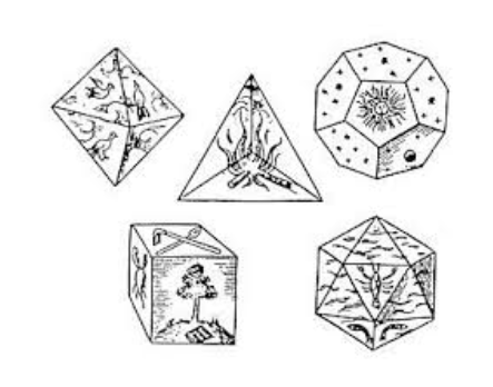 Más tarde, Platón y Aristóteles retoman y conversan con estas ideas, convirtiéndose en los grandes portavoces del pensamiento griego clásico. Para Aristóteles, el éter sería un 5to elemento, «la quintaescencia», proveniente de la integración de los otros 4. Por su parte, la geometría de los «sólidos platónicos» asigna el tetraedro al fuego, el hexaedro a la tierra, el octaedro al aire, el icosaedro al agua y el dodecaedro -como el que viene con tu juego- al éter.