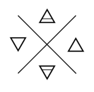 Hacia la edad media, alquimistas, neoplatónicos y gnósticos ya consideraban a los cuatro elementos como fuerzas materiales, espirituales y como aspectos del ser humano. Las representaciones de los elementos con estos triángulos como glifos ya se utilizaban en esta instancia y habrían devenido así desde aquel Cuadrado elemental de Empédocles.