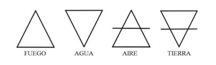 Fuego: intuición // Agua: sentimiento // Aire: pensamiento // Tierra: sensación.